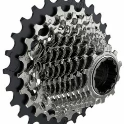 La cassette 11-32 signale l’introduction non seulement d’une nouvelle cassette à plus faible démultiplication, mais aussi d’une nouvelle gamme de cassettes qui sont étiquetées « Campagnolo 11 » et seront disponibles dans les combinaisons suivantes : 11-25, 11-27, 11-29, 11-32 et 12-27. (Pour 11-32, il faut un dérailleur arrière moyen)
