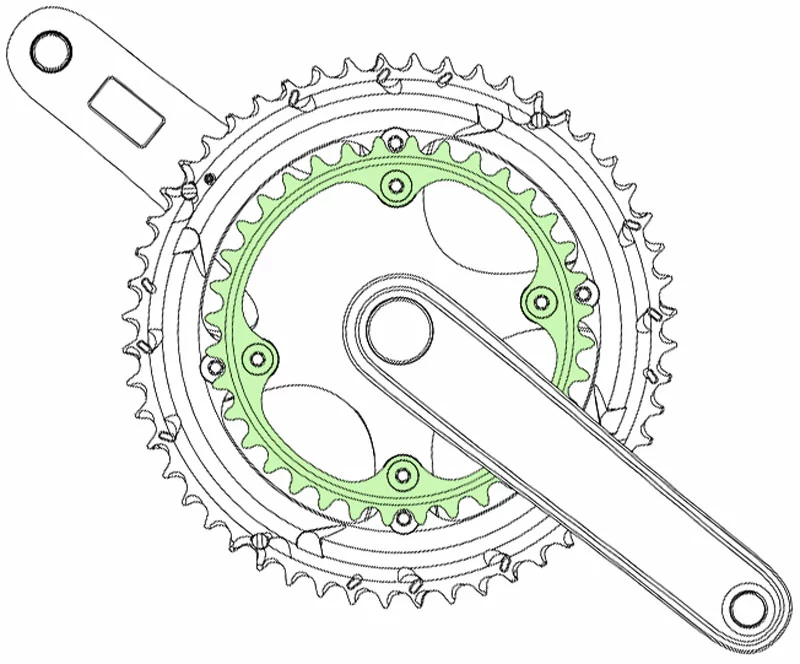 Le plateau de rechange intérieur Campagnolo avec un cercle de trous de 112 mm pour la garniture de manivelle Super Record et Record 2 x 12 vitesses.