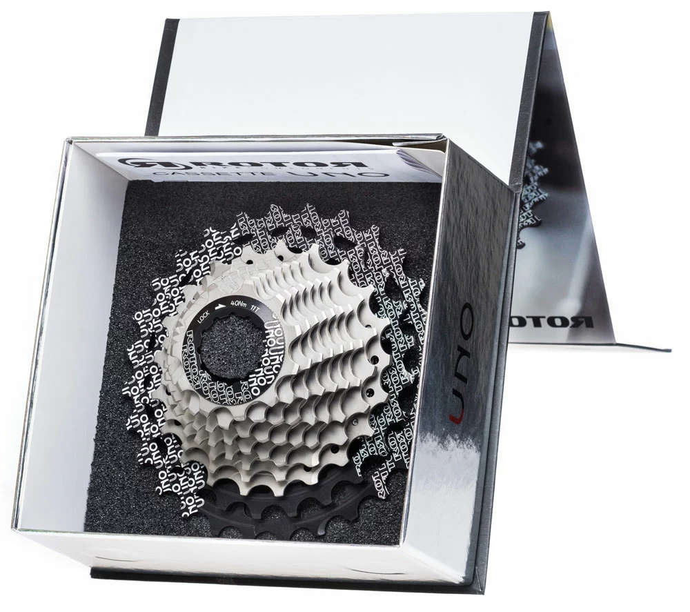 L’expertise de ROTOR en matière de conception de transmission est appliquée à la cassette UNO, résultant en une pièce d’art super légère et précise. C’est la cassette parfaite à combiner avec le groupe ROTOR UNO, mais elle est également compatible avec les autres groupes 11s et les corps de roue libre utilisant le modèle Shimano/SRAM.