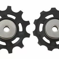 Jeu de galets tendeurs premium Dyna-Sys11 pour Dura Ace 11 vitesses. Les roulements de précision étanches des deux galets assurent un fonctionnement à faible frottement de la transmission.