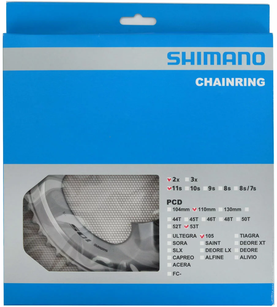 Plateau de rechange Shimano pour la garniture de manivelle 105 FC-R7000 11 vitesses (MW) avec 53/39 dents.