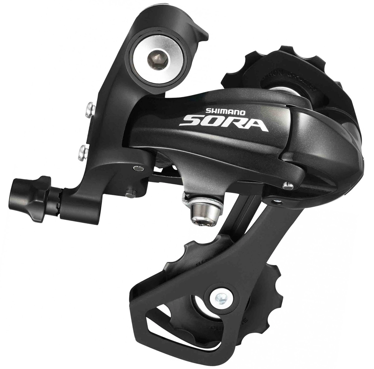 Le dérailleur arrière Shimano SORA RD-R3000 à 9 vitesses, avec son design élégant et clair, est destiné aux sportifs et aux amateurs de fitness.
