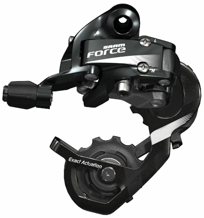 Le dérailleur Force dispose de l’Exact Actuation™, un rapport de transmission qui permet des écarts de commutation précis de 3 mm sur toute la plage de transmission.