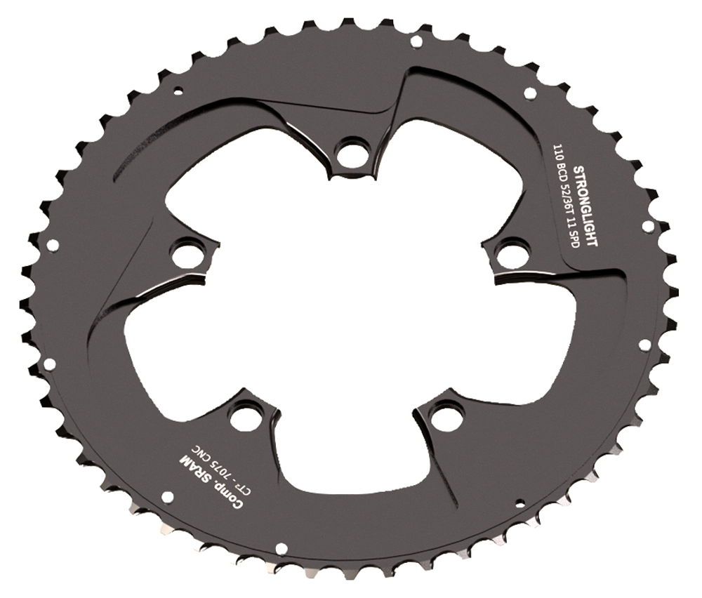 Le plateau de pédalier Stronglight pour les manivelles SRAM des groupes Red et Force22 est une pièce de rechange populaire et de grande qualité. Il dispose d’un diamètre de fixation (BCD) de 110 mm.